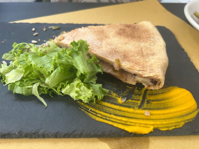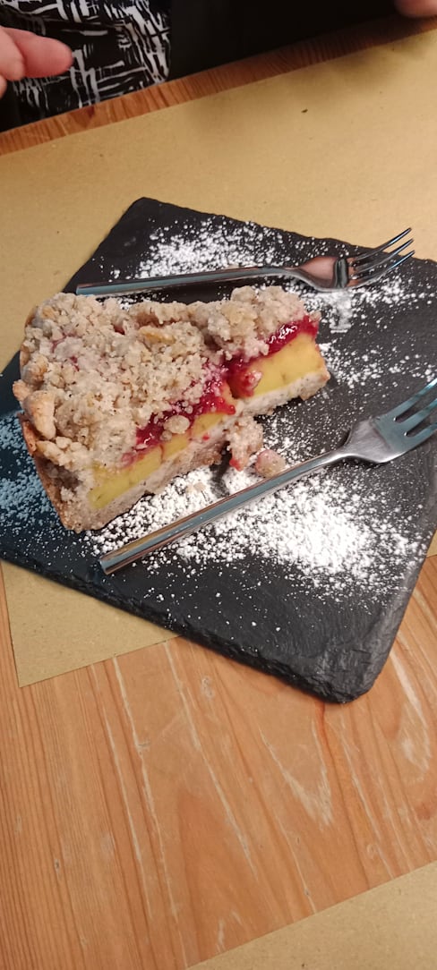 4/10Although the website and Google say the restaurant opens at 12.30 pm, I was not warmly welcomed when I turned up at that time instead of 1 pm when my reservation was. The same happened to an elderly couple who arrived just a couple of minutes after me. After explaining I was happy to just have a drink while the kitchen was getting ready, I was finally offered to take a seat. The vegan Red Cabbage Flan I ordered was remarkably tasteless and the 'cheese' sauce with it was completely insipid. The real gem on their menu is the vegan tiramisu cake which was out of this world; unfortunately, given the experience overall that would be the only thing I would ever order here if I were to come back to this place in the first instance.