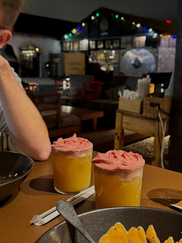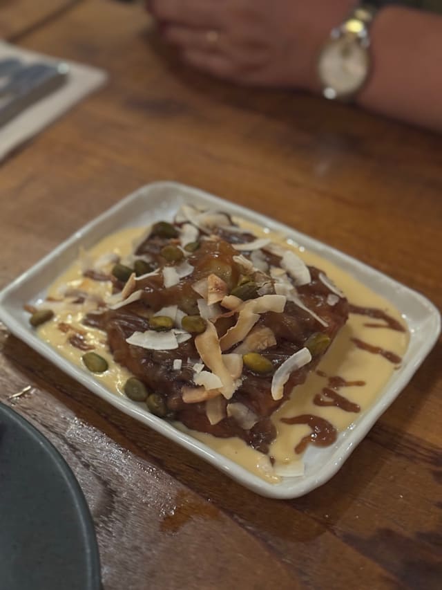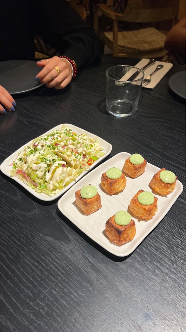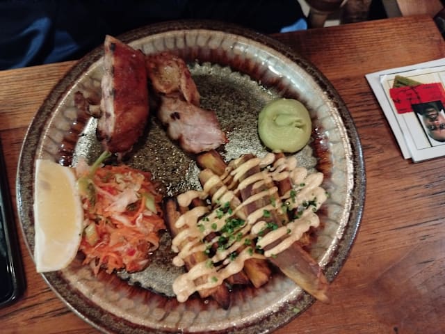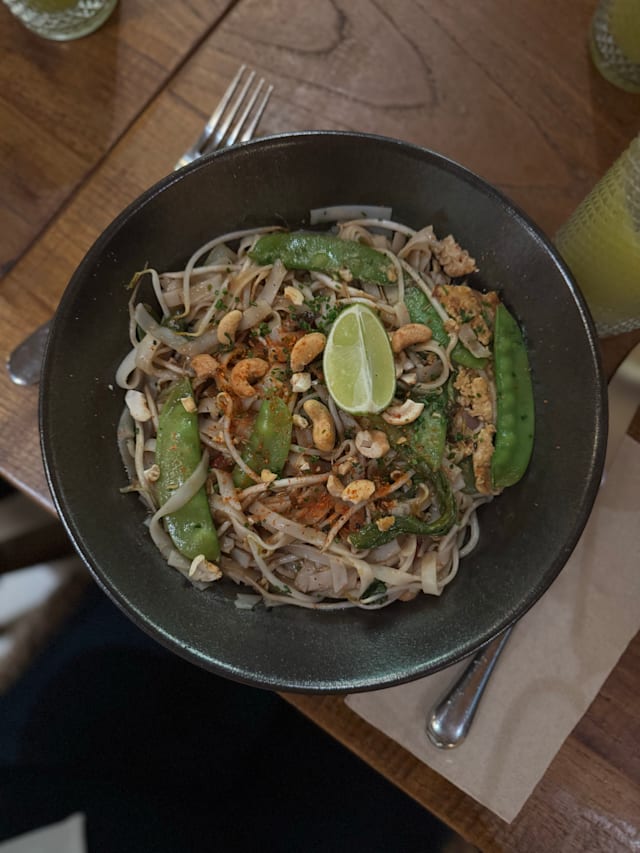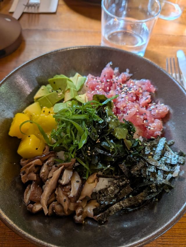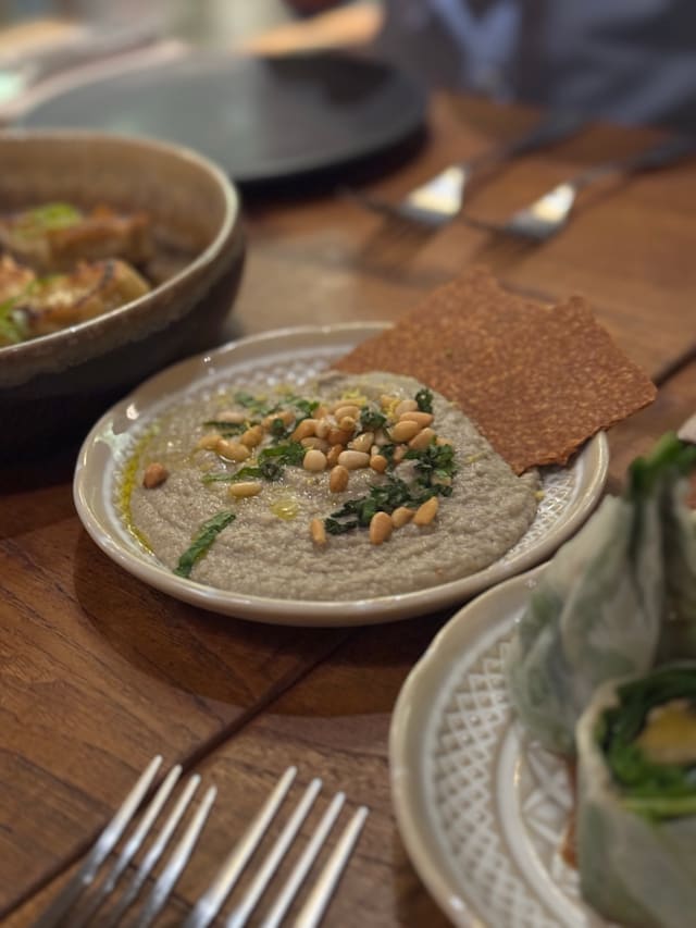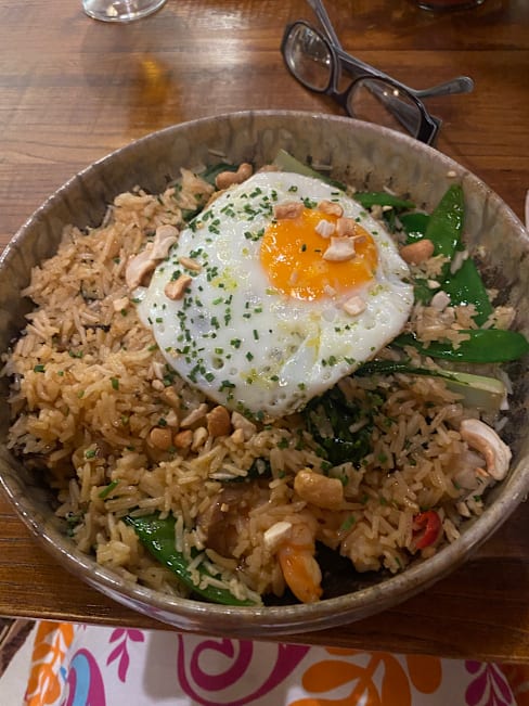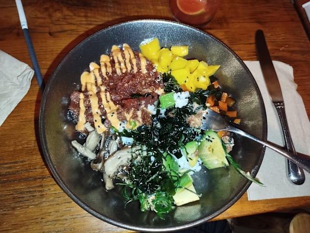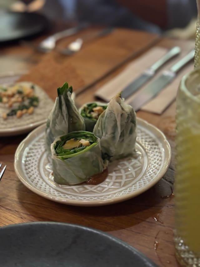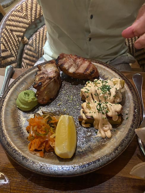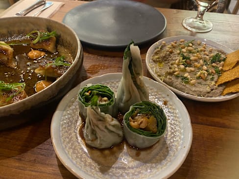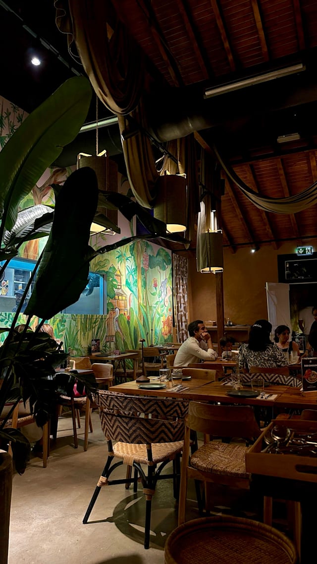 7/10The food was delicious. We ordered Vietnamese rolls, gyros and Babba ganoush starters. Roast chicken and Nasi Gorenge. It was all very tasty. My husband really enjoyed his chicken which was like a Mediterranean roast dinner. The vegetables were all really fresh. My only criticism was that my rice and prawn dish was only lukewarm. My preference would have been to have it hotter. There was happy hour so we had a half price beer and two cocktails. A jungle pilot which was ok and negroni which was delicious. The service was very slow despite it being very quiet. We waited ages to order drinks and food but once ordered everything came out on time. Our waitress was really friendly and polite. We did point out we had booked through TheFork but she forgot to add the discount (worth checking the bill) but immediately rectified it. Really lovely restaurant and great decor. Should imagine on a busy night it has a great atmosphere. It’s in a really cool area worth visiting