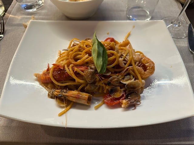 9/10Best seafood pasta I ever have . We have squid/asparagus pasta & lobster pasta, packed with good flavors & fresh seafood. The raw oyster & red shrimps are also very fresh & tasty. Many local visits on a Thursday night, it’s a good sign! The waitresses are also very friendly & helpful. We don’t speak Italian, they did a good job to make our needs served. Already want to go for a second visit!