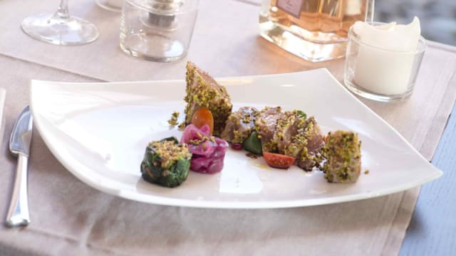 8/10We found the starters and pasta courses to be excellent whilst the mains were disappointing. As a dedicated fish restaurant you would expect the catch of the day to be available on a Thursday evening but it was not so further limiting the main course options. Certainly worth a visit but perhaps stick to the starters and pasta primi courses! Nice location and as for a non smoking outdoor table as you are placed into a raised area outside. Friendly, helpful staff and a very relaxed atmosphere.