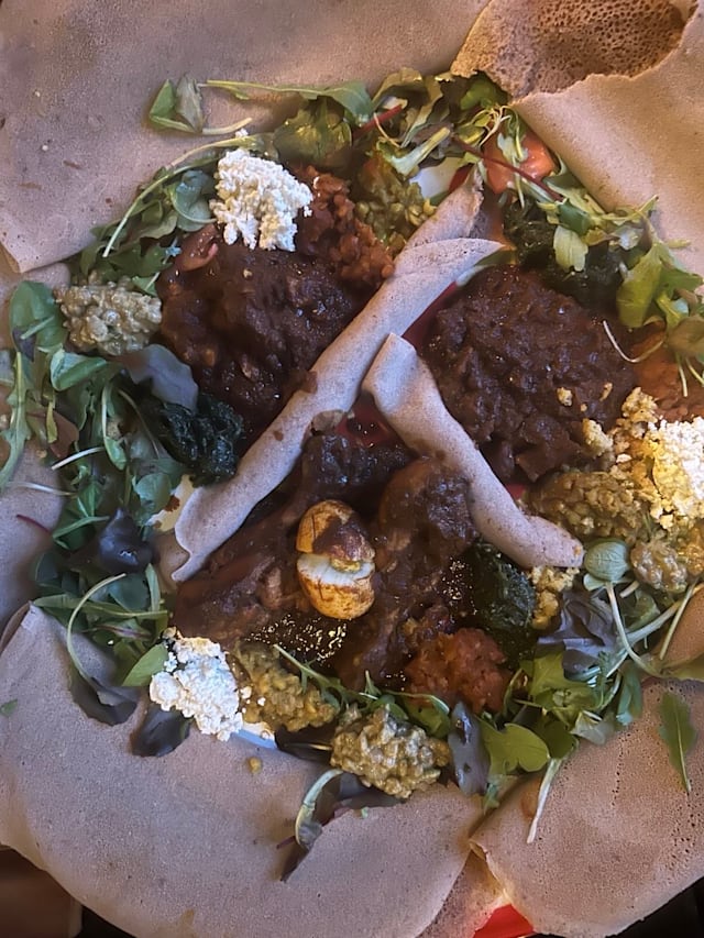 9.5/10Food was great; I had the lamb dish with injera and date cake for dessert. Definitely worth visiting.
