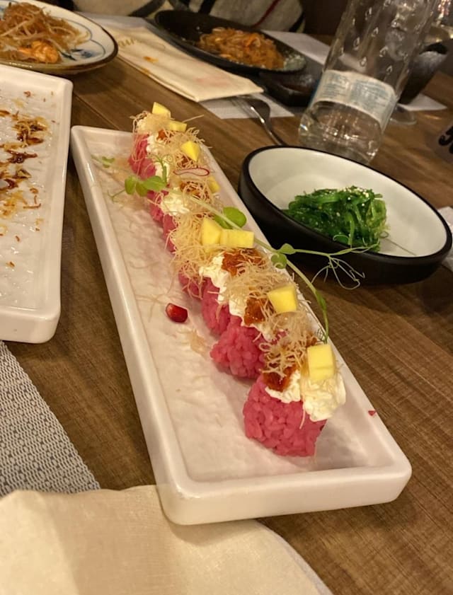 10/10The restaurant had a really nice atmosphere and you can choose if you want all you can eat or à la carte. We went for all you can eat which was 25.90 each for us adults and half that for our kids. Slightly more expensive than the sushi place we go to at home but ok. The menu itself is extensive and there are also some hot Chinese dishes as well as the usual sushi, tempura, etc. I was pleasantly surprised to find chicken and sweetcorn soup as for me it's the first time I've seen it in such a place in Italy. The sushi was nice and good quality, fairly traditional without any weird and wonderful creations like in other places recently and our kids also ate well with sushi they knew as well as chicken skewers, rice and chicken (delicious I must say!) and prawn crackers. A glass of white wine cost less than a bottle of water and was nice too. Overall very nice and I'd definitely go back if I come back up to this area.