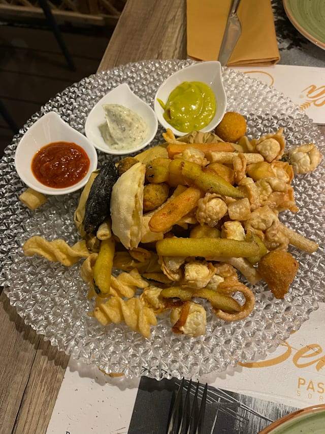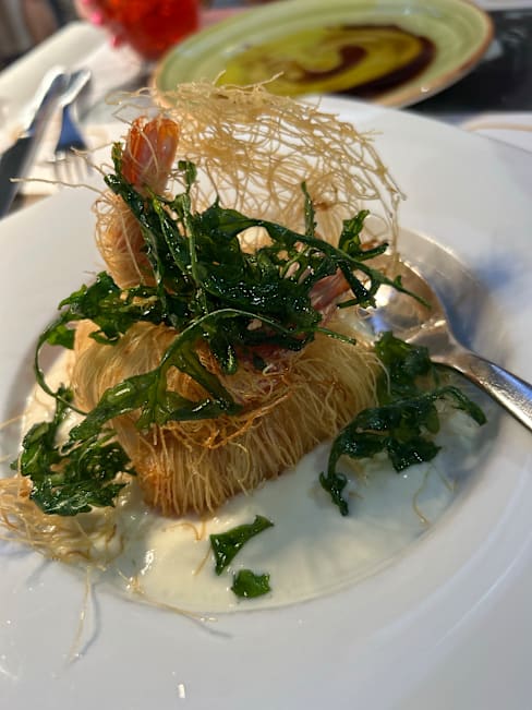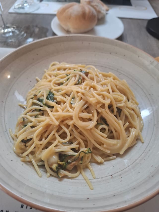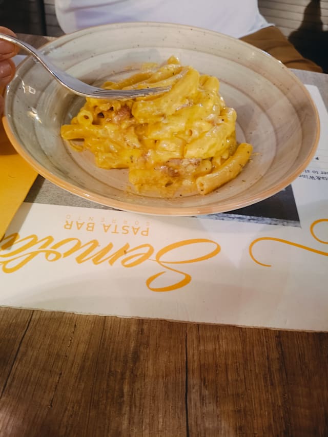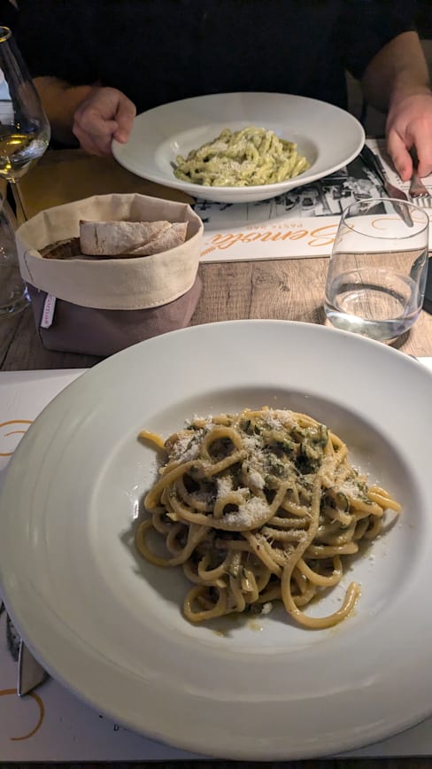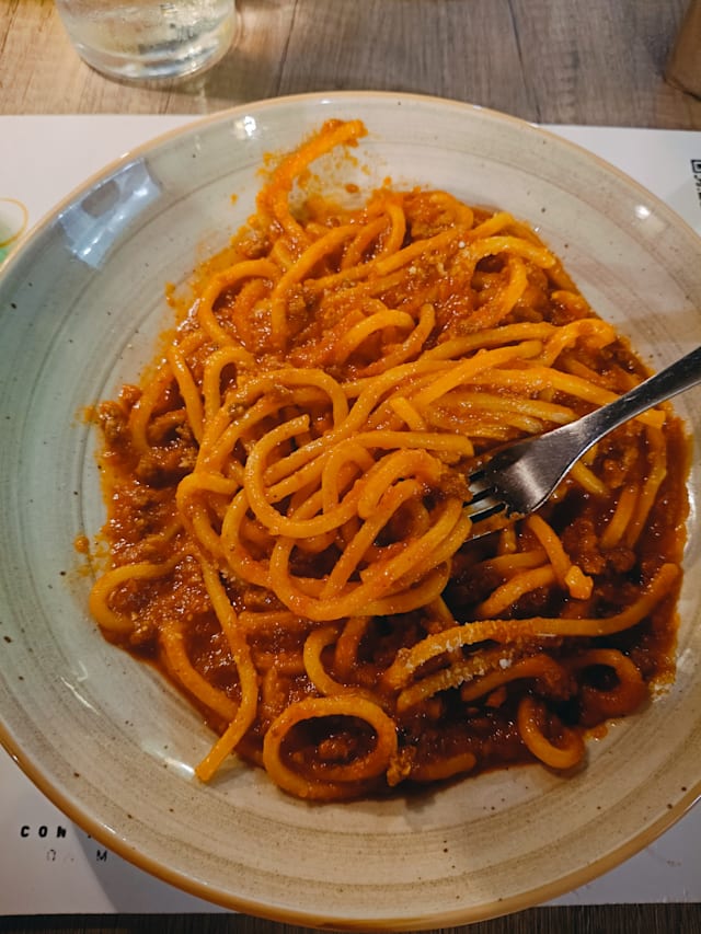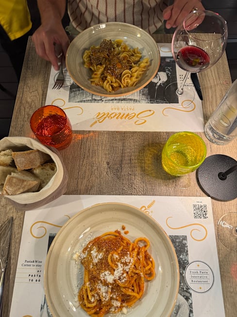 3.5/10Tourist trap. Don’t bother. Pasta is just ok. Very average food. Staff are extremely rude and dismissive. We had pre booked but were ignored by all waiting staff for at least 10 minuets despite there being free tables and staff members walking round not serving. They also charge you 3€ for mineral water which was clearly just a used mineral water refilled with tap water as the seal was broken on the lid and there were water stains on the neck of the bottle from where it had been used/washed before. The Parmesan they use is pre-grated from a packet, not good quality. Experience felt rushed once we sat down and staff were pretty consistently rude throughout.