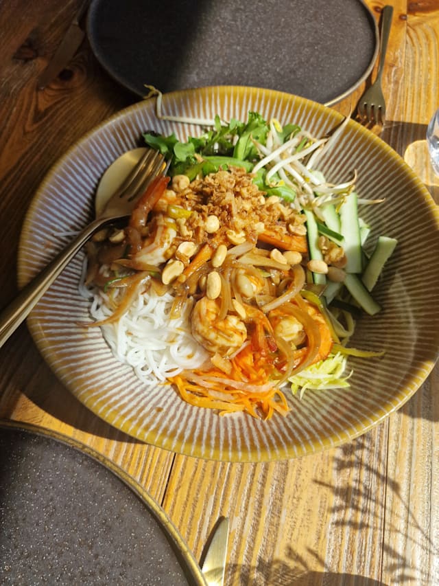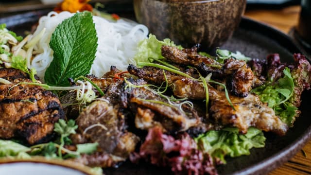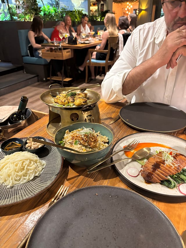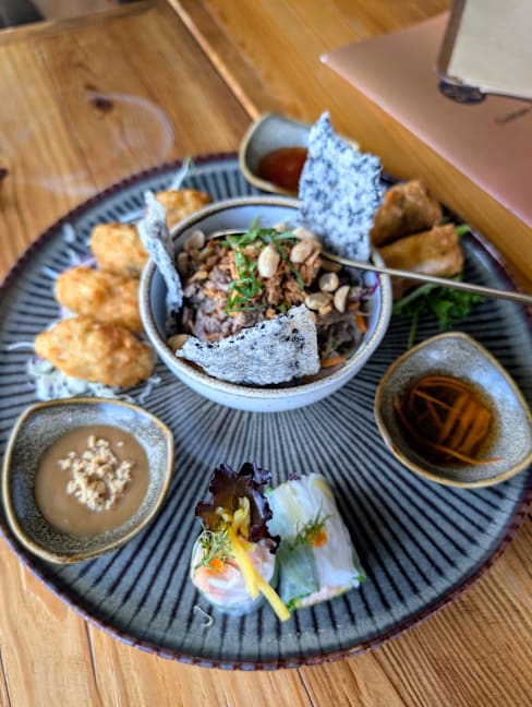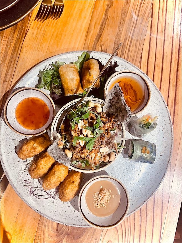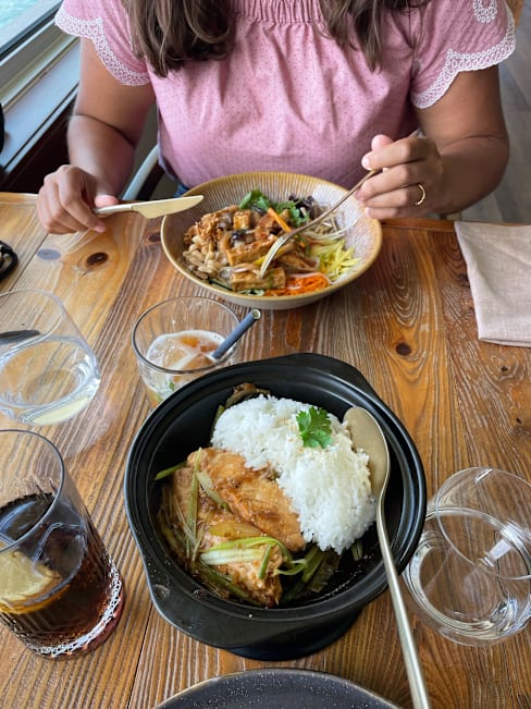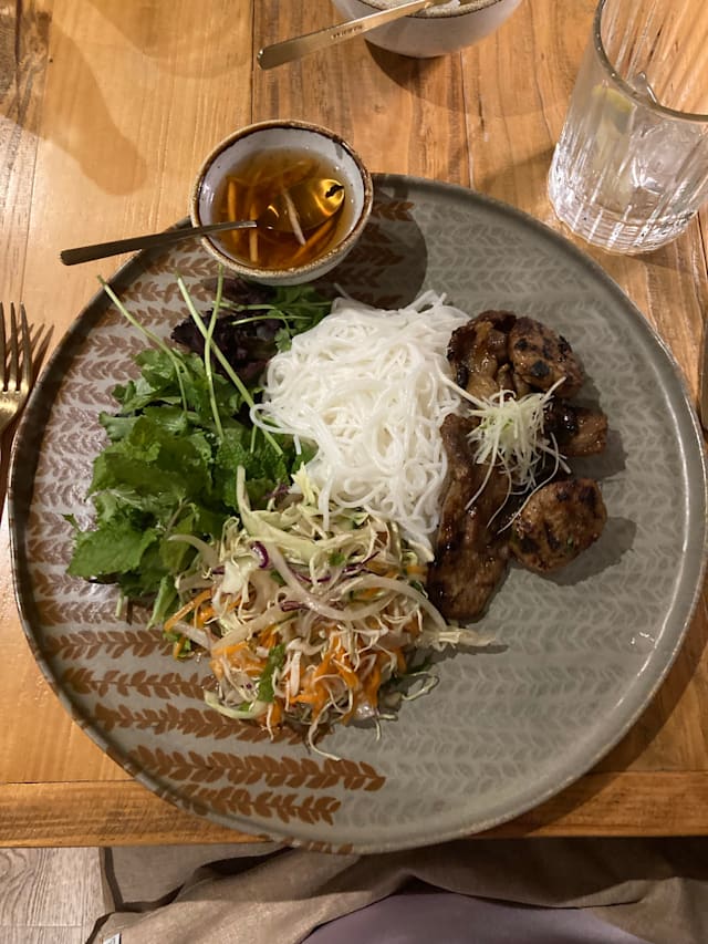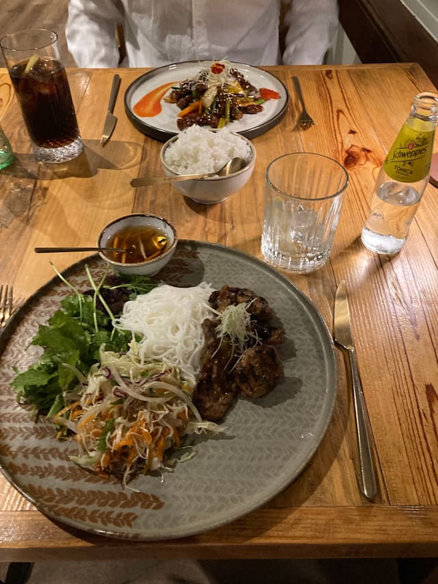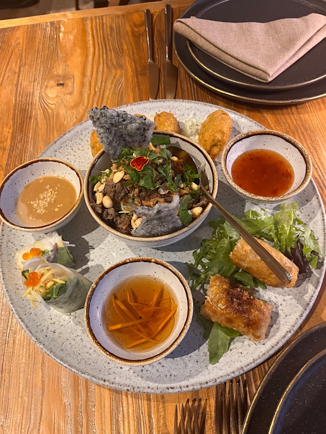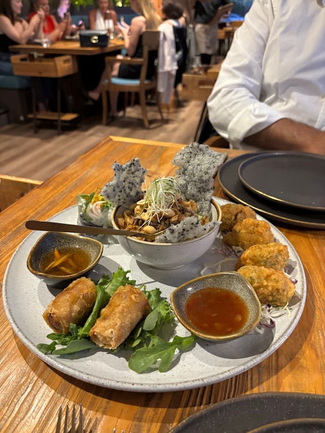 3.5/10I was really looking forward to this restaurant because I like Vietnamese food and the view. We found the service lacking as in the restaurant was very busy and so waiters had to be tracked down (not there fault rather a management issue), food had very little taste aside from the view the rest was a 3/10. Also the music was so loud and a very noisy table so it was impossible to have a conversation.