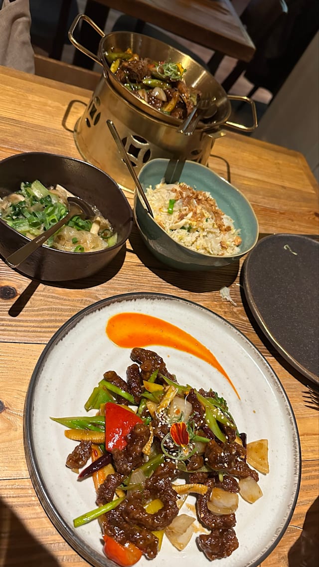 Filé mignon aos cubos no wok, marinado com óleo de sésamo e pimenta phu quoc.