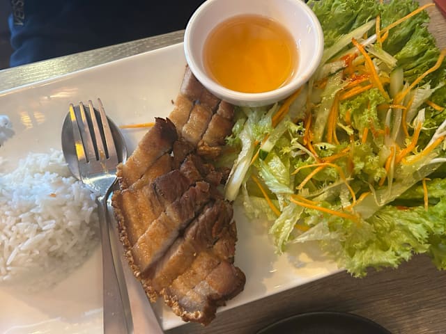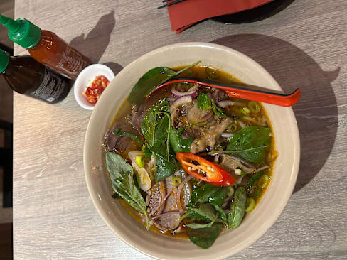 8.5/10Really lovely Pho dish with beef. Wasn't spicy and needed extra spice for my taste preference (i asked for spicy beef pho).. restaurant was very quiet at 6pm, we were family with children, so staff were happy and attentive. Will definitely go back and try more dishes.