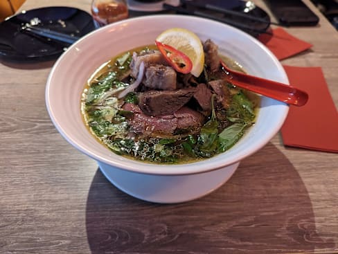 8.5/10Really lovely Pho dish with beef. Wasn't spicy and needed extra spice for my taste preference (i asked for spicy beef pho).. restaurant was very quiet at 6pm, we were family with children, so staff were happy and attentive. Will definitely go back and try more dishes.