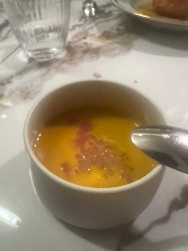 8/10very good food, shrimp croquettes, duck, excellent cognac arrange, A/C was off hot place, table are very small, moderate prices
