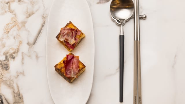- Poitrine de porc française croustillante, moutarde et sauce soja caramélisée