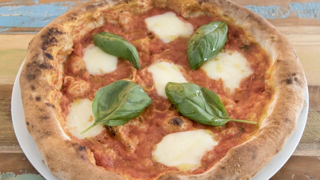 Sauce tomate san marzano, mozzarella fior di latte, basilic, huile d’olive
