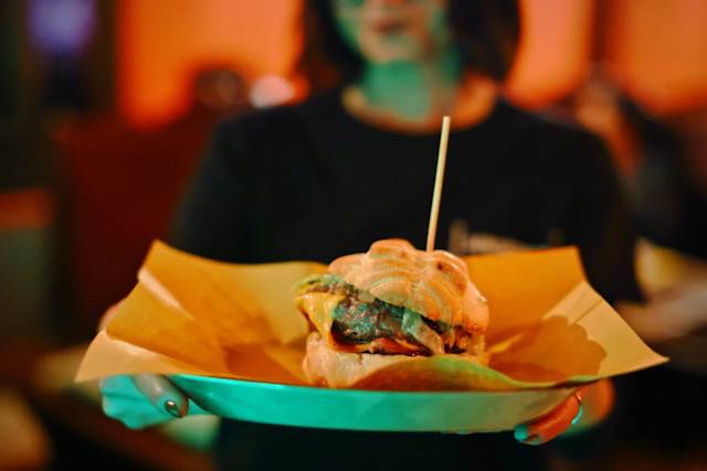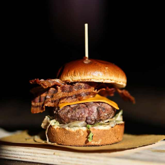 - Manzo, lattuga, cheddar bianco, bacon, pomodoro, cipolla agrodolce, salsa senzatempo