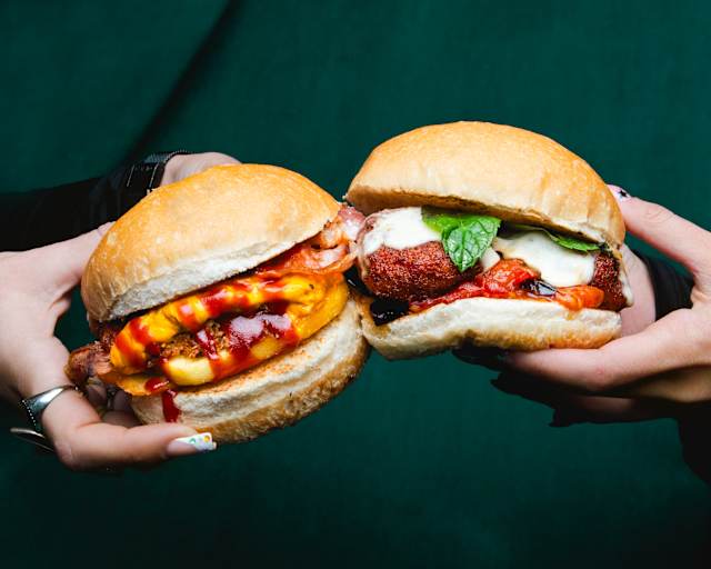 - Morbidi mini bun farciti con hamburger artigianali, bacon croccante e cheddar fuso, accompagnati dalla salsa burger.