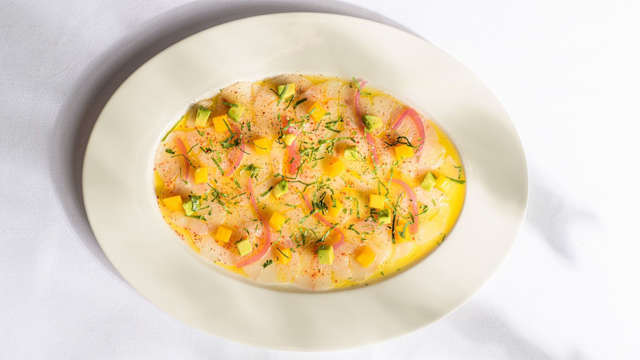 - Ceviche de bar / vinaigre de sureau / gingembre
