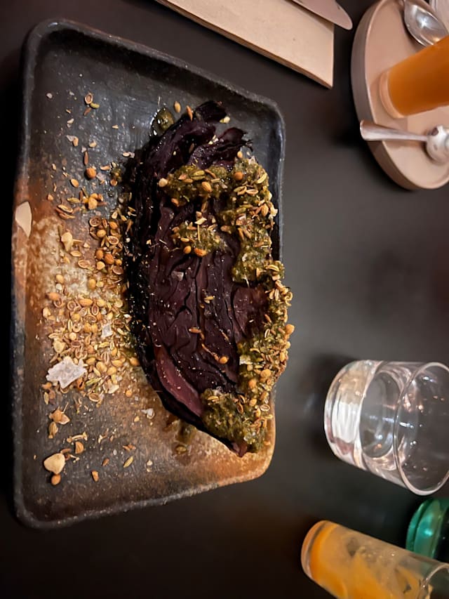 8/10Lots of delicious dishes on offer (cauliflower, red cabbage… mmmm), kind waiter, quick service, including a small portion of soup of the day to taste. Choice of music the evening we were there was a bit too loud / led zeppelin like or so but after asking to reduce volume, the style became a bit more appropriate too.