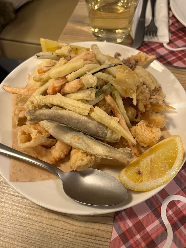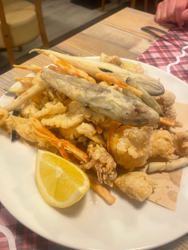 Frittura di pesce misto dell'adriatico con calamari, gamberi e verdurine