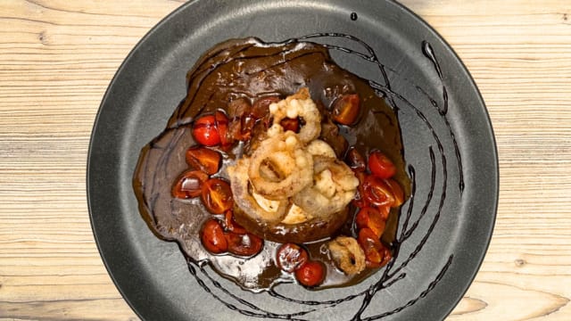 Filetto di scottona marchigiana con burrata e cipolla croccante