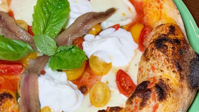 Provola, salsiccia paesana, cipolla caramellata, pomodorino confit e rosmarino