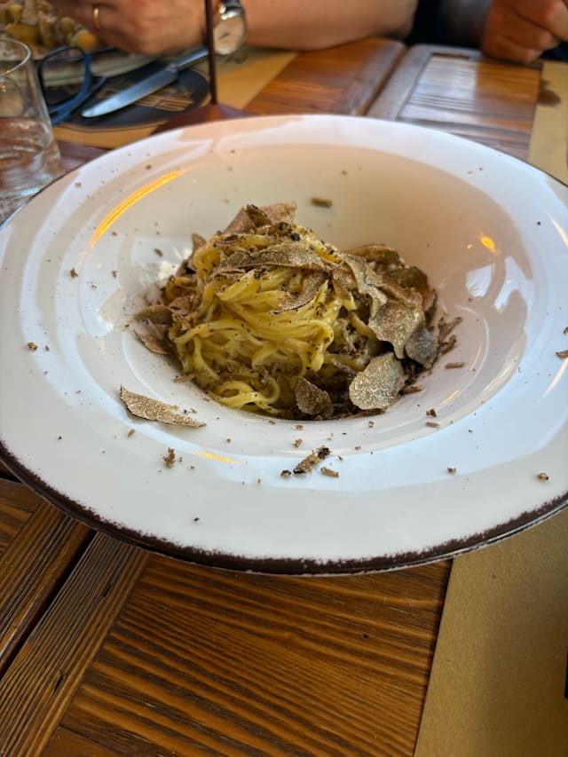 9.5/10The excellent food and relaxed atmosphere. Although our service was noticeably slow compared to others who were perhaps spending more money, the staff were very pleasant and welcoming. Truffles, pasta, porcini and delicious ice cream with olive oil, what’s not to like? The wine, bread water and olive oil also very good.
