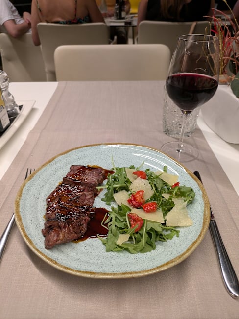 5.5/10The steak was average and far too salty, and the salmon was undercooked in the middle. There were two staff members – the woman was very professional and spoke excellent English, but unfortunately, the man struggled with basic communication. The steak knife also made it difficult to cut the meat properly. Overall, the experience felt overrated, and even with a 50% discount, I wouldn’t say it was good value for money.