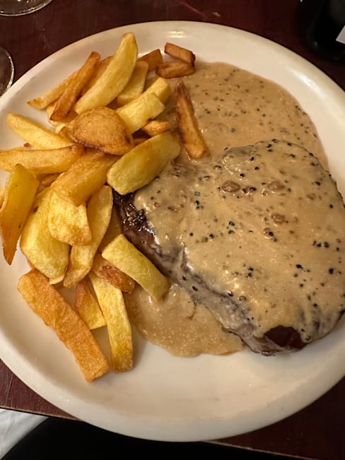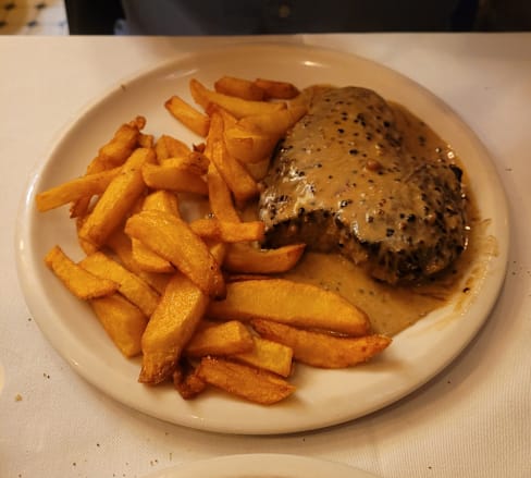 10/10Ambience, attentive service, excellent steak frites with pepper sauce.