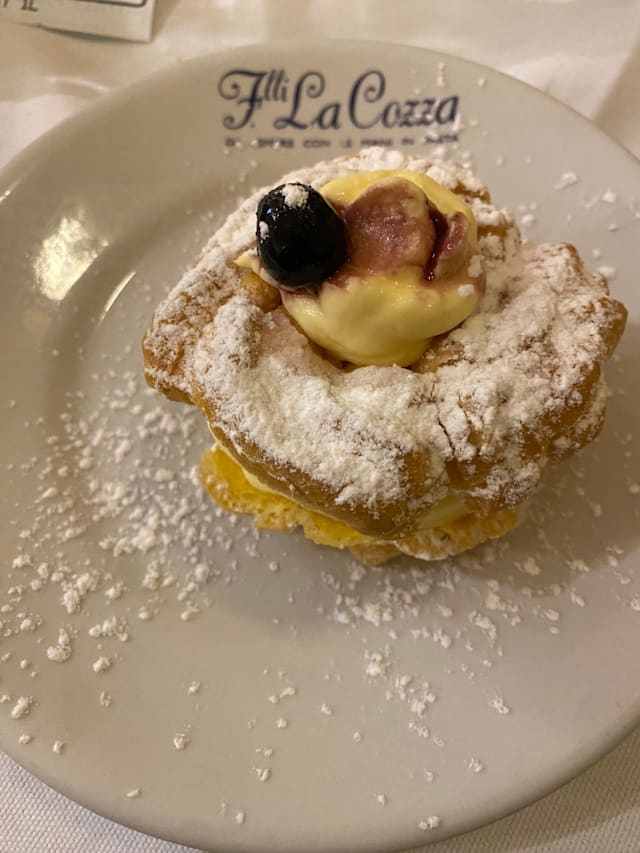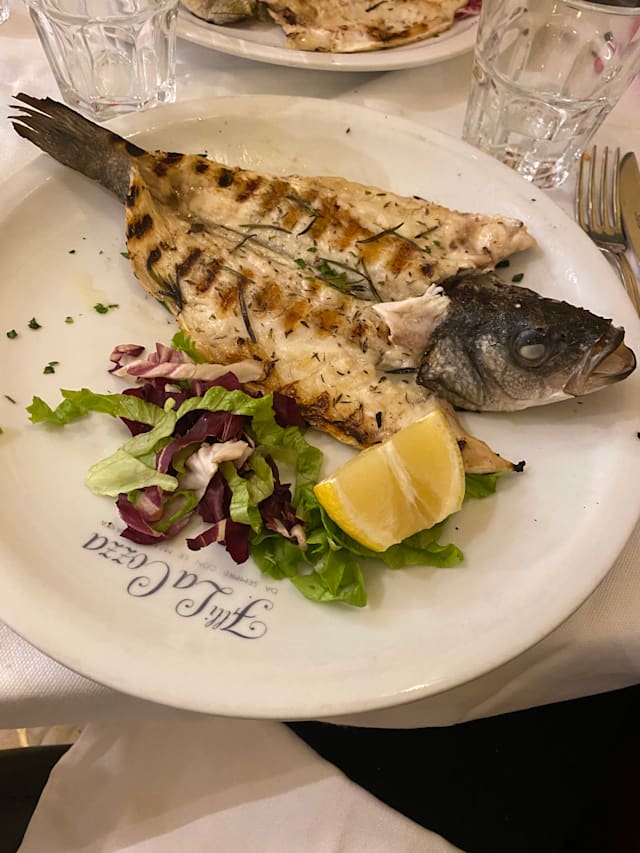9/10Already saturated after the primo, I enjoyed the Bruschetta as starter. Fish was fine and dessert skipped as I was absolutely saturated. Good WiFi and really close to all the museums (combined it with the Egyptian museum more or less around the corner)