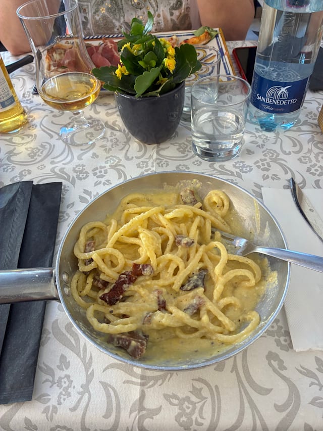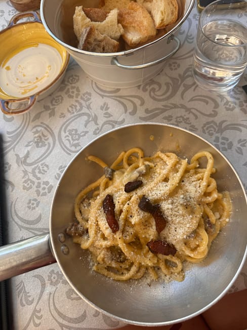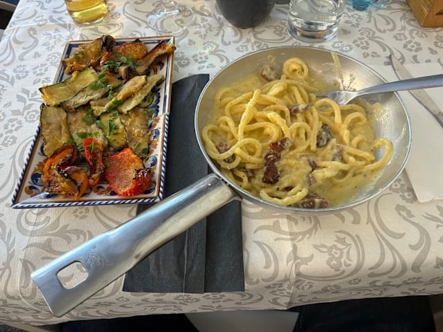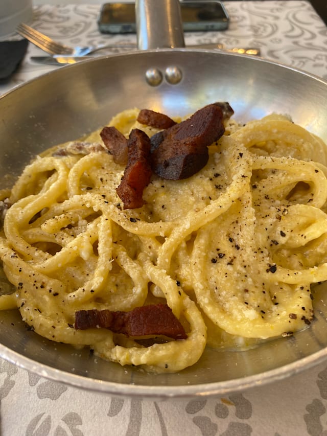 10/10Carbonara was fantastic. We also had the carciofi alla romana which was very good and the lasagna con funghi, which was also good. Our choices ended up being very heavy (with fat/oil) but we were very pleased! They did forget to bring me my beer, but I didn't really want it anyway. Excellent service too