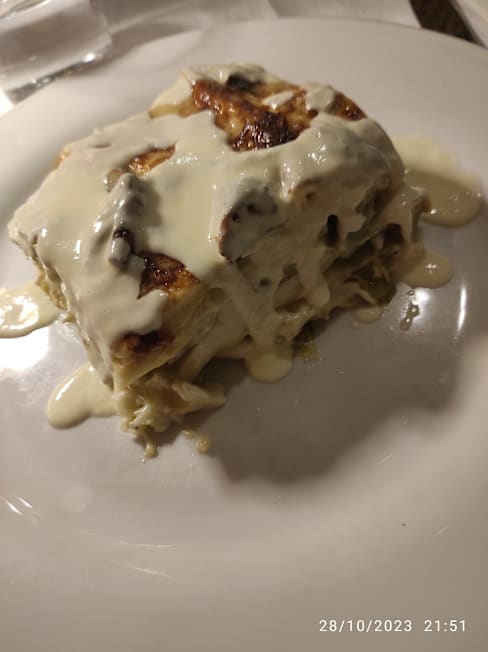 9.5/10Really good Italian food in this lovely restaurant where you can eat outside, below an old hall. The eggplant with mozzarella were marvellous. The waiters were all extremely efficient and friendly. Perfect lunch for us.