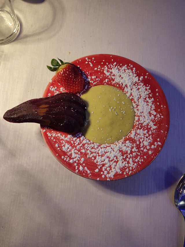 5.5/10Worst service I have had in Verona. The staff were overworked and distracted. The dish my husband ordered was out so they came back to have him select another which he did immediately. Two of the five diners had pasta for their main course. After appetizers they brought their pasta while the rest of us sat and watched them eat despite asking why they were served ahead of the others. Then when they were almost done two other main dishes came out but not my husband’s substitute dish. After waiting they said they would be back and after another 20 min no food. We waived them over and another waiter said he would check. Our waitress finally came out and was surprised he wanted food. After explaining what happened she scurried back and in 10 more minutes he had his food. Our salad had not arrived earlier so we cancelled and once my husband finish eating out came the salad! We expressed our embarrassment of this disjointed and lengthy piecemeal dinner for guests. No apology- no compensation.