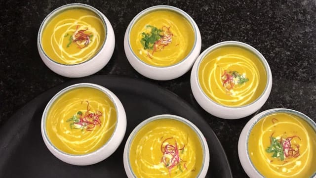 Soupe de Lentille à l’ail Tosa au coriandre fraîche et curcumin