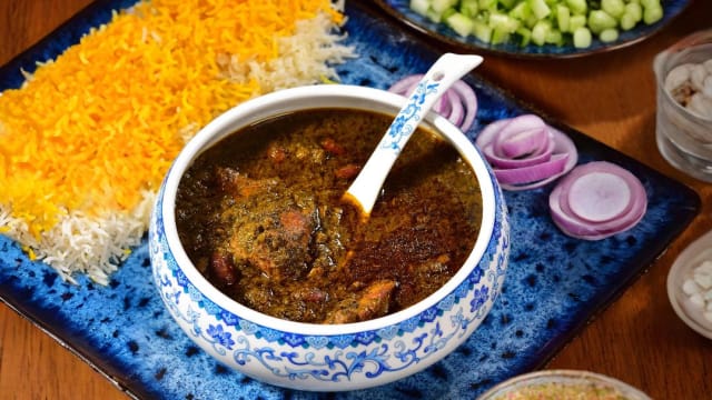 Agnello con erbe aromatiche (ghorme sabzi)