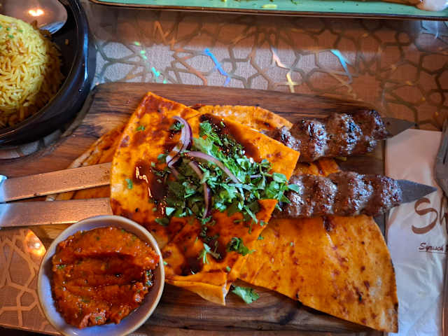 9/10Visited on a Tuesday evening, it was busy which is always a good sign. Attentive service and interesting menu; we ordered 4 Meze starters, all very nice, which we shared, resulting in 4 very clean plates. Main’s were generally good; I had the mixed kebab which was excellent - well cooked, excellently seasoned and accompaniments accentuated well. My eating companions were a little mixed; two good dishes and one not so (although more a reflection of their palate I suspect).