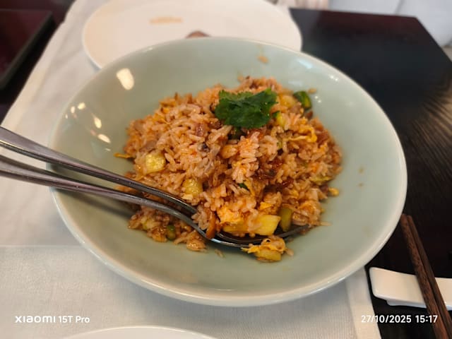 Arroz tropical con pato, piña, cilantro y frutos secos