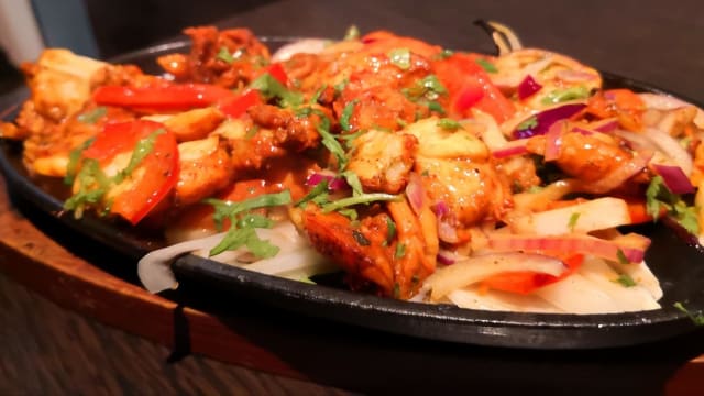 - Kipfilet gemarineerd met koriander, vienzaad en citroen, geroosterd in de tandoor en gemengd met verse salade en chaat masala (een mengsel van gemalen specerijen).