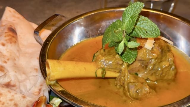 Traditional dish that already existed during the great mughal empire in northern india, pakistan and bangladesh. The lamb is cooked for over six hours with spicy bengali spices and served with naan.