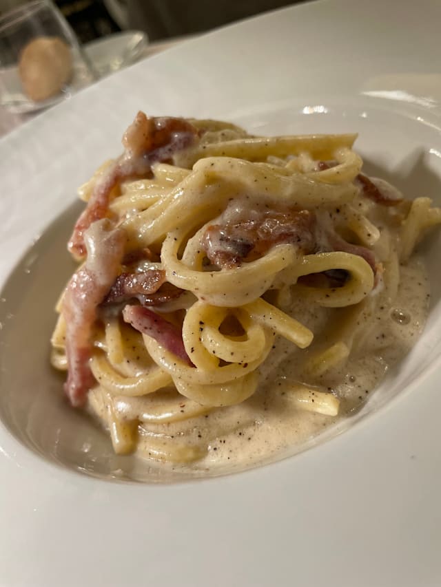 Spaghetti alla chitarra cacio e pepe con guanciale