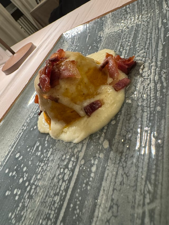 Flan di zucca su fonduta di Parmigiano reggiano e guanciale croccante