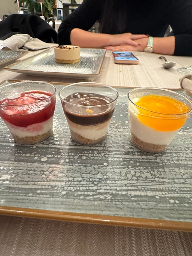 Cheesecake alla fragola, cheesecake al cioccolato e cheesecake al frutto della passione