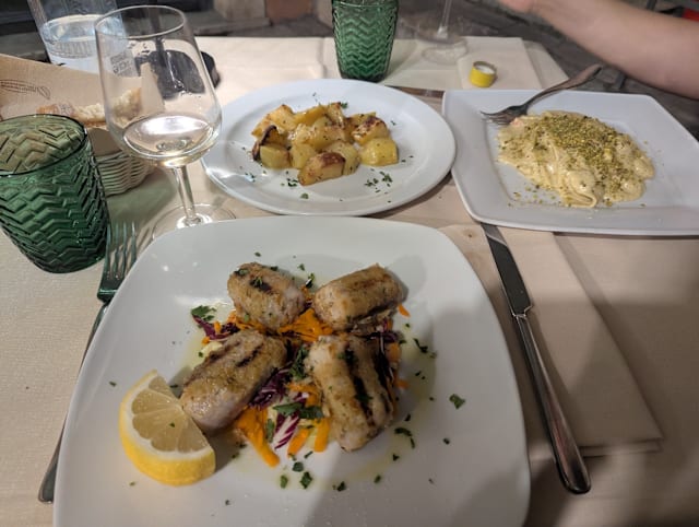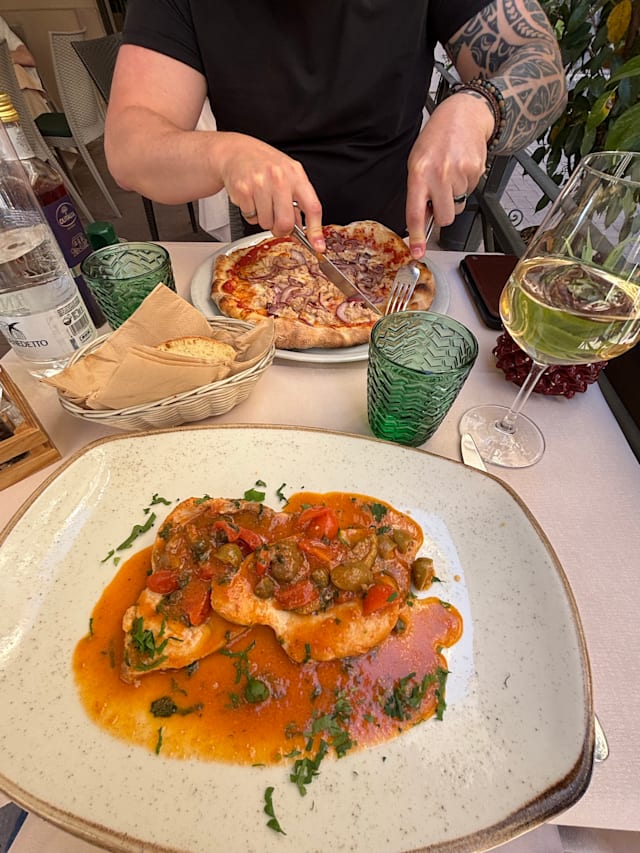 5/10I regret to say that I cannot recommend this restaurant to anyone. The bread served at the table was stale and hard, as if it had been sitting around for days. The sea bass fillet I ordered was surprisingly thin and the most miniature fillet I have ever seen. It left me wondering if the kitchen was trying to save on ingredients. Equally disappointing was the pizza, which was chewy and unpleasant to eat. My son, usually a pizza fan, couldn't stomach more than a couple of slices due to its unappetizing texture. Despite the shortcomings of the food, the wait staff was courteous and accommodating throughout our meal. However, excellent service alone cannot compensate for the subpar dining experience. Save yourself the disappointment and explore other dining options in the area.