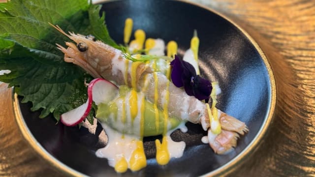 - Scampi, salsa mango, salsa avocado, pistacchio