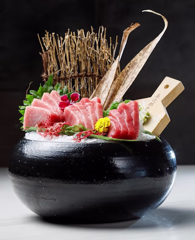 - Tartar de atún y aguacate con ikura y crujiente tempura