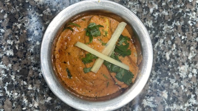 Pollo marinato con erbe e spezie indiane,yogurt, ginger, aglio cucinato in tandoori (piccante)