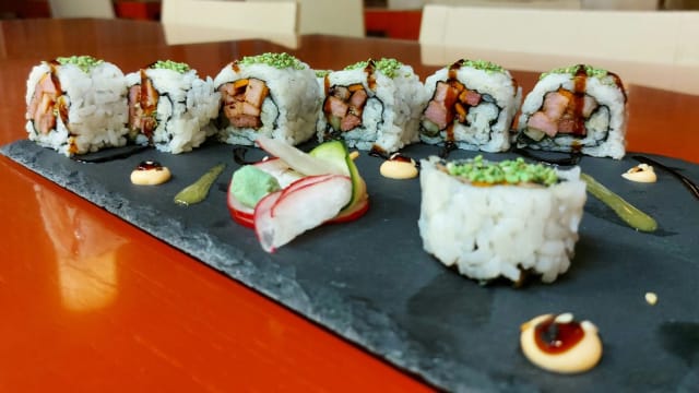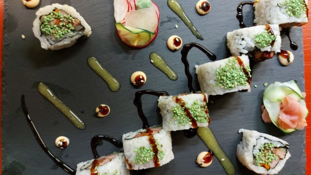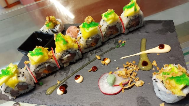 Buffalo muzzarella above fresh tomato e sesame seeds