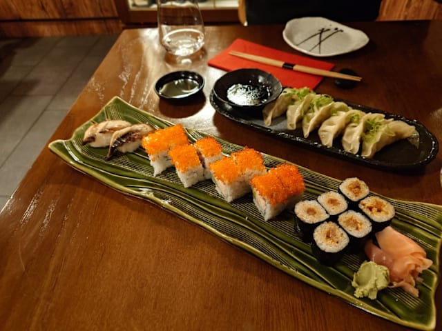 10/10Delicous Japanese food made with excellent ingredients and lots of care. We loved the Chef’s selection of sushi and nigrini, as well as the edamame and chicken gyoza.
