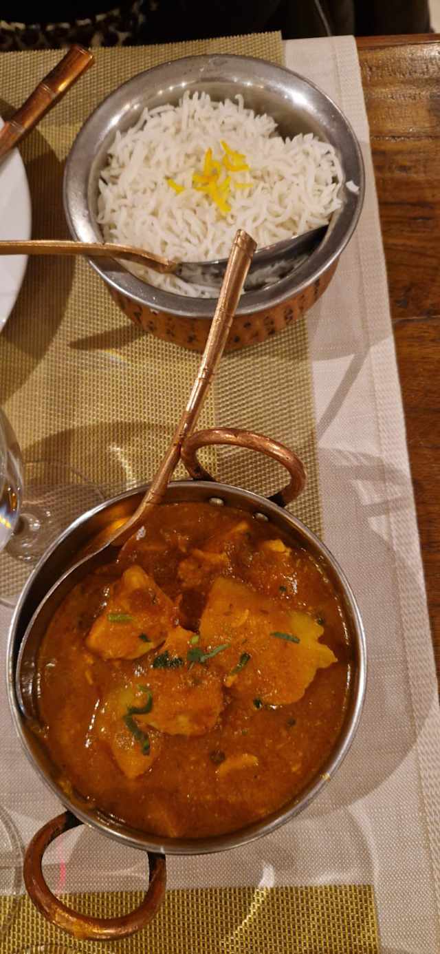 8/10Very very gentle service and good food. The only remark is about getting the appetizer (popadom) togheter with the main course. Some time between the two course would have let greater dinner experience. thx