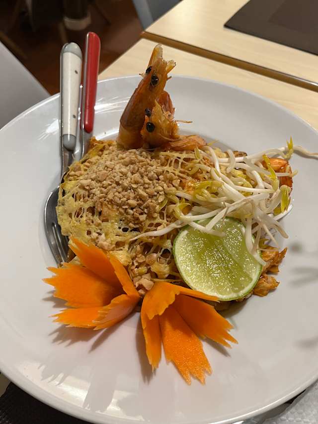 9.5/10service was helpful, friendly and efficient. Dishes were freshly prepared and flavorful. We particularly enjoyed the red curry with duck... spicy and delicious. accessibility: note that the restaurant is located up a flight of stairs.
