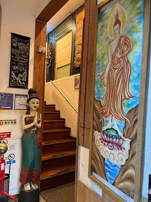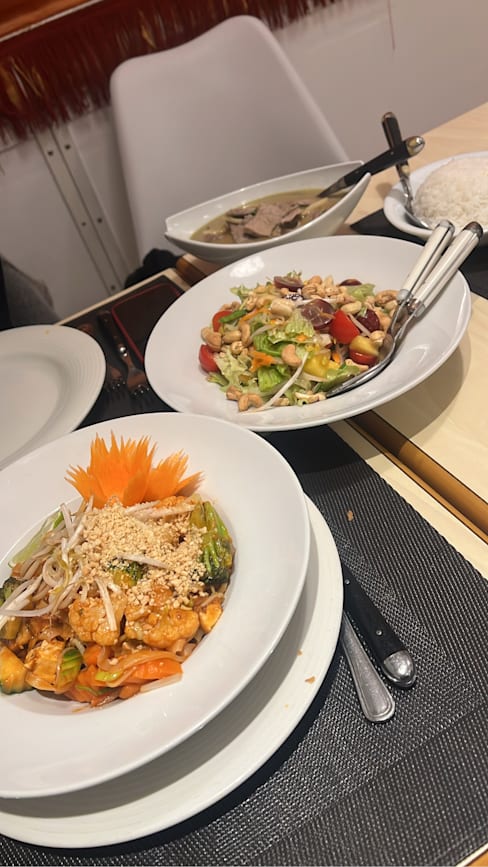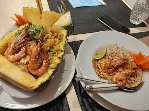 6/10The smell of humidity and mold hits you as soon as you enter the door, unpleasent to say the least.. Main course was bland and uninspired unlike real Thai. 7.5€ for a portion of prawn crackers? No Thai cocktails. No spices on the table, like fish sauce or soy. Only plus point where the very friendly server, and the dessert which was good but expensive.