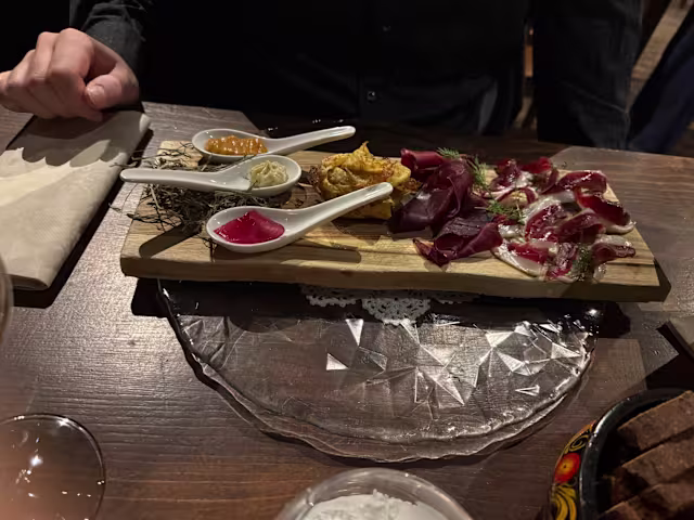- Mocetta d’alce • petto d’oca affumicato • composte e burro casa sibir