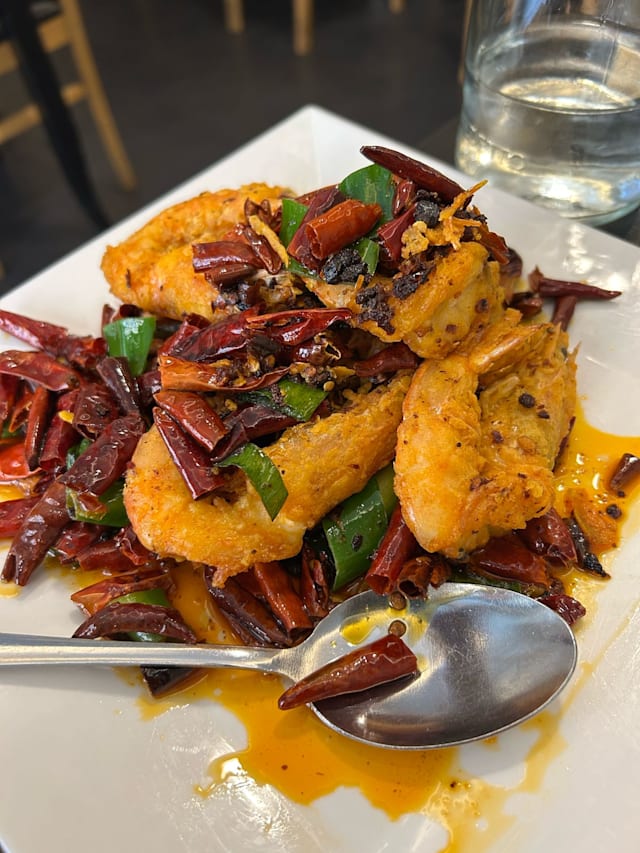 7/10The food we ordered was OK. We had grilled spring rolls but they were actually fried. Shrimp dumplings were OK. We also ordered the Spicy Sichuan Chicken. It was at least 50% chilis with the rest being chicken. It was impossible to eat without being sure that there weren’t too many chilis in each bite. Service was good and it’s inexpensive. We will give it another try and order different dishes next time.