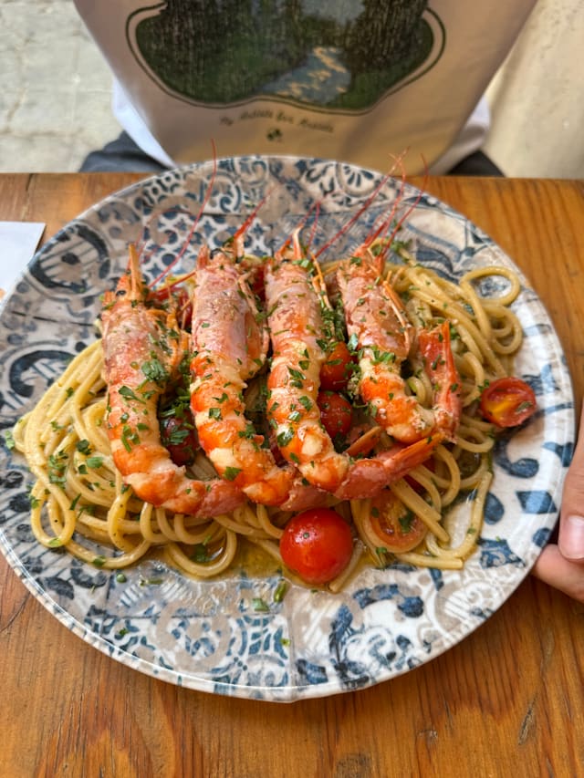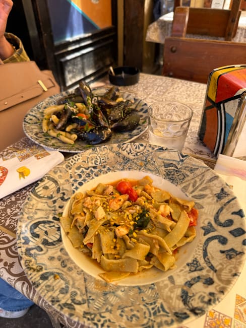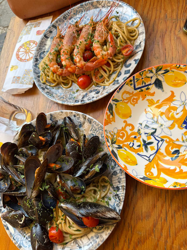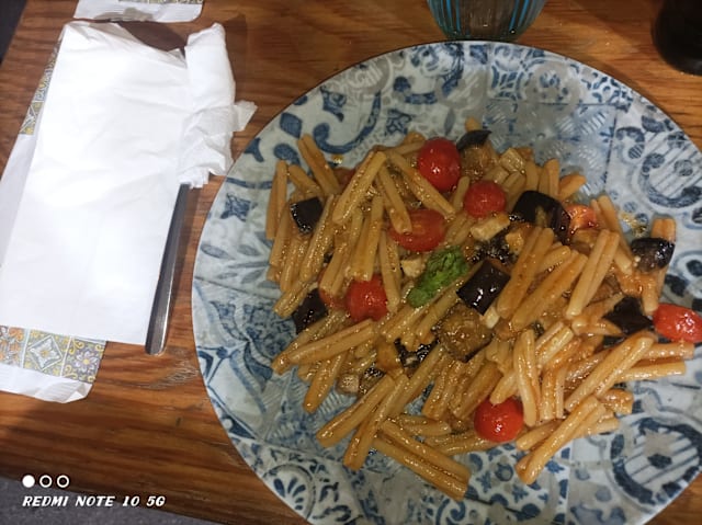 10/10Fantastic food. Can’t recommend it highly enough. Walking down from the busy, overcrowded Teatro area on a Saturday, the streets become quieter so the restaurant is a bit off the beaten track. But that’s what makes it a gem. We sat amongst locals and ate simple, but delicious mussels, followed by the most divine pasta dishes. The pasta with prawns and cherry tomatoes was the best I’ve ever eaten. The Norma was just fantastic and the spaghetti with Anchovies a local, delicious classic. Try the panelle, too. Make the journey!