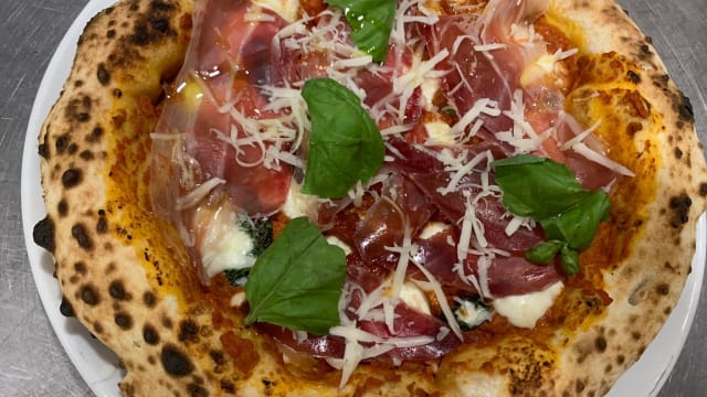 Bufala campana dop, crudo s. daniele, datterini freschi, rucola, scaglie di grana padano